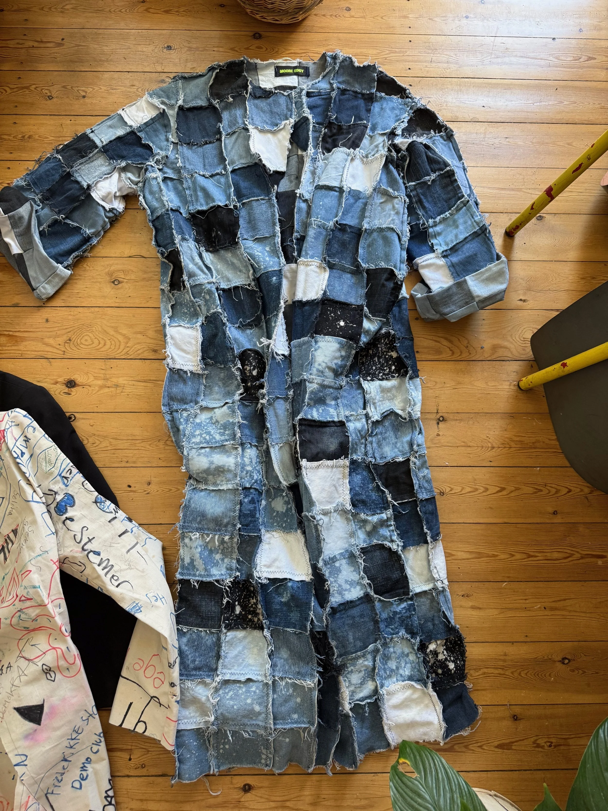Tankerne bag de materialer jeg bruger ligger i at bruge så rene materialer som muligt så de er nemme at nedbryde. Jeg kan specielt godt lide at arbejde med naturlige materialer som silke, hør, skind og bomuld men når man køber genbrug som jeg, bliver man nogle gange nød til at bruge blandings produkter som indeholder syntetiske materialer også. Jeg prøver altid at tænke, at så længe det er secondhand så hjælper det stadig på klimaet.